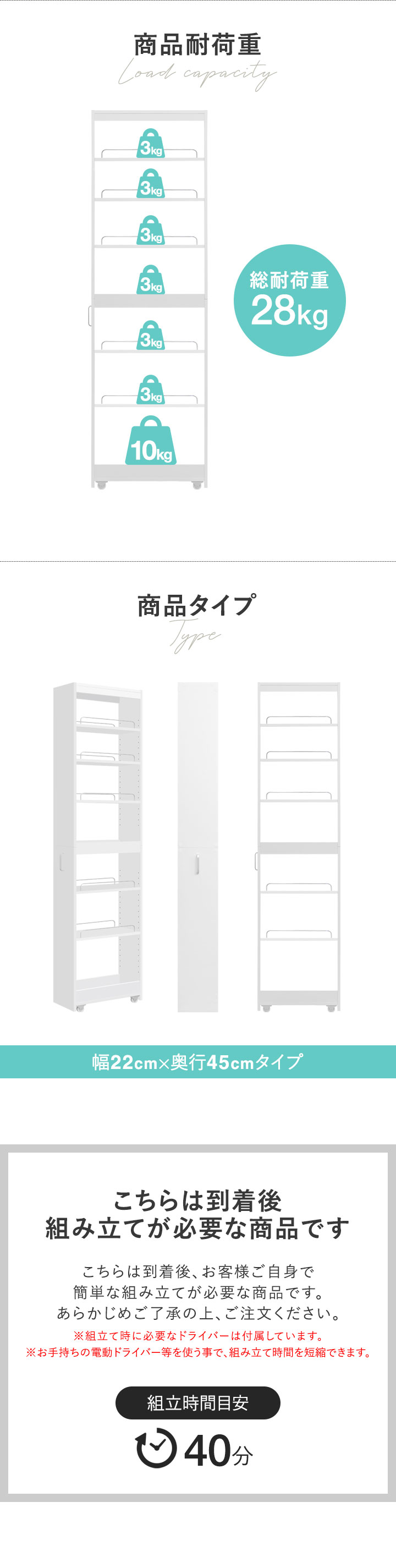 | 耐荷重: 1〜6段目:(約)3kg 最下段:(約)10kg 全体:(約)28kg |