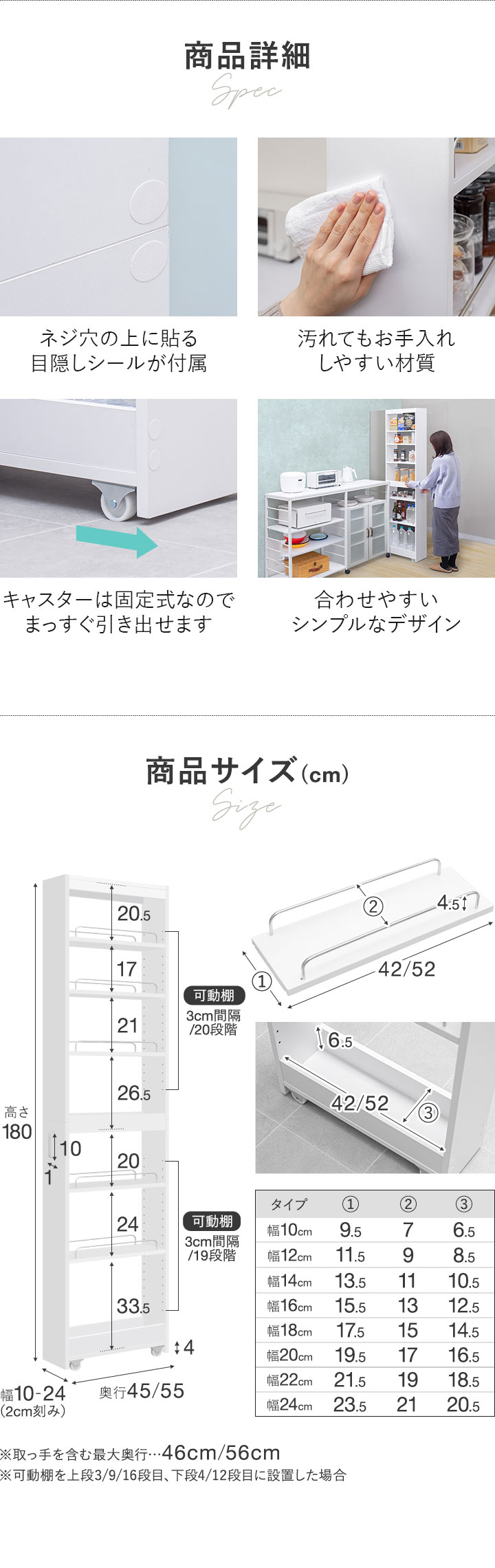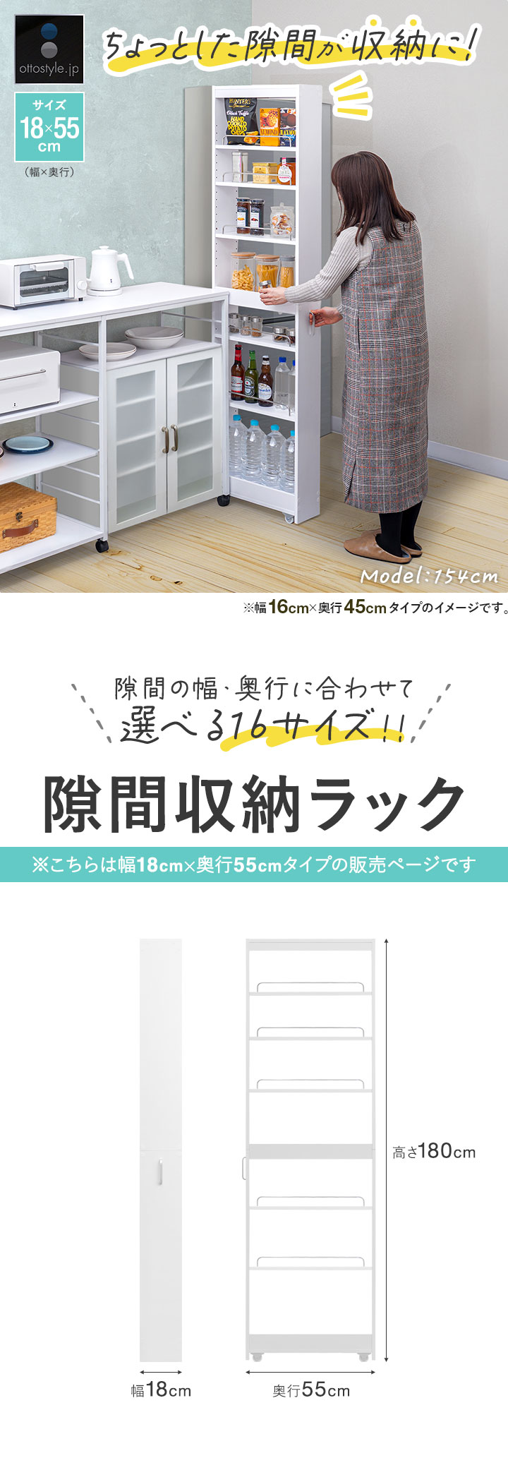 | サイズ: (約)幅18cm×奥行55cm(56cm※ハンドル含む)×高さ180cm |
