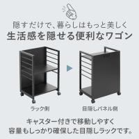 キャスター付きで移動しやすく容量もしっかり確保した目隠しラックです。キッチン周りやリビングはもちろんデスク周りやランドリースペースにもピッタリ!目隠しもできるので、幅広く使えます。