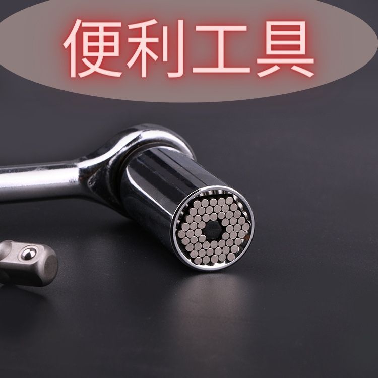 自転車の修理から日曜大工までなんでもござれの万能ソケット☆この部分に回したいボルトやナットを固定!付属のラチェットハンドルでグイっと回すだけ!ナットやフックの形状に自動で合せます!ソケットを変える時間を大幅に節約!対応サイズ:7〜19mmのネジやボルトに対応サイズ(約):レンチ長さ18cm、ソケットΦ2.3×長さ5.5cm、ドリル用アダプター長さ5cmセット内容:レンチ本体、ソケット、電動ドリル用アダプター送料の関係上、外箱なしとなります。手の形状に自動で合せて簡単に締めたり緩めたりできます。角が欠けたボルト・ナット、フック、なめたボルトやインチねじもコレ1本で!多数のソケットを替えずに作業ができ、時間短縮・効率アップに繋がります。ソケットアダプター付きなので電動ドライバー/インパクトドライバーでご利用可能。時間短縮に: ナットやフックの形状に合せて、ほとんどのネジを簡単に締めたり緩めたりできます!多数のソケットを替えずに作業ができ、時間短縮・効率アップに繋がります。スペース節約にもなりますので工具箱がスッキリ!※PC環境により実際の色味や質感と異なる場合がございます。※製品の仕様・画像・パッケージは、商品改良のため、予告なく変更される場合があります。※モニターの違いや照明により、実物と画面では見た目の色に多少違いがございます。予めご了承ください。※直射日光の当たる場所や屋外で使用すると色落ちや変色する場合があります。また、表示サイズが実際と多少異なる場合があります。※製造時、輸送時における、傷汚れ等がある場合が御座います。ご了承ください。
