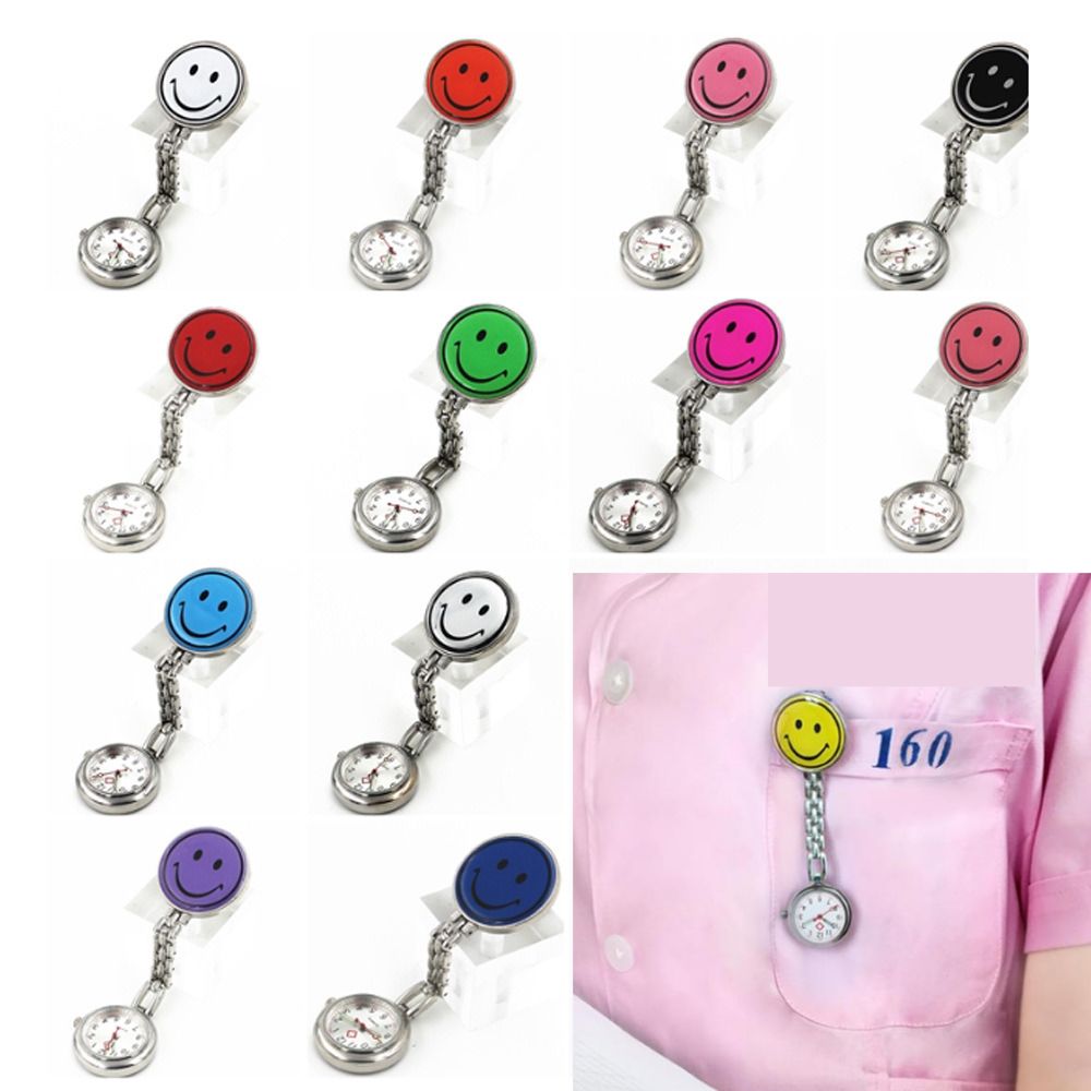 送料無料 ナースウォッチ クリップ 時計 懐中時計 かわいい おしゃれ シンプル スマイル 逆さ表示 見やすい 蓄光 看護師 ニコちゃんマーク