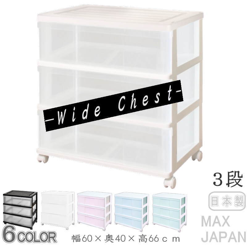 衣装ケース 収納ケース 収納ボックス 引き出し プラスチック 押入れ収納 ワイド チェスト 3段 おしゃれ ホワイト/クリア キャスター付き 組立式 日本製 爆買