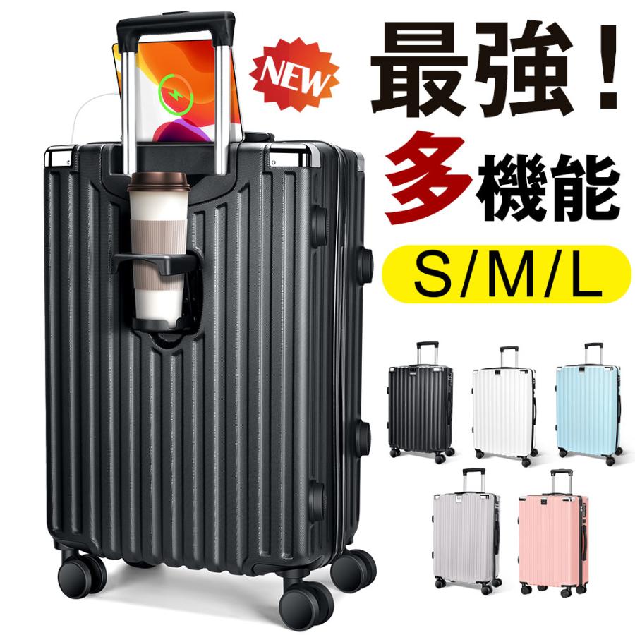 スーツケース キャリーケース 軽量 機内持込 【レビュー特典】 キャリーバッグ 修学旅行 出張 2泊3日 4泊5日 大容量 多機能 USBポート カップホルダー TSAロック
