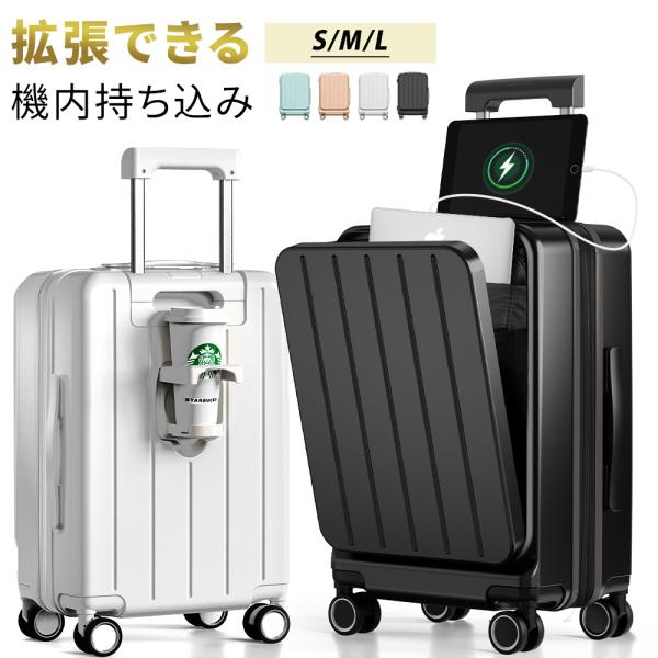 スーツケース 軽量 フロントオープン 機内持込 【特典付き】 拡張機能付き キャリーバッグ 大容量 S M L 2泊3日 4泊5日 USBポート フック付き 修学旅行 出張