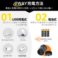 乾電池式で便利:単3形電池×3本で稼働、USB充電にも対応し、緊急時にも使いやすい。