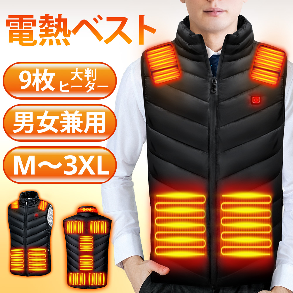 【特典付き!】 電熱ベスト ヒーターベスト 軽量 11枚 9枚 日本製ヒーター 男女兼用 速暖 作業用 加熱 3段階温度調整 USB給電 洗濯可能 釣り バッテリー追加OK