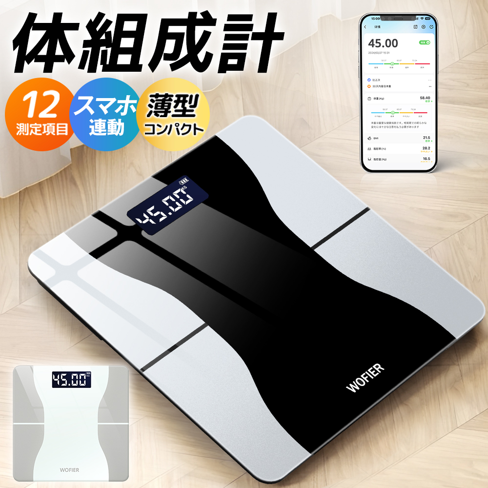体重計 スマホ連携 デジタル 体組成計 薄型 高精度 体脂肪率 体脂肪 水分率 基礎代謝量 BMI値 電源自動ON/OFF 健康管理 ダイエット 家庭用 【レビュー特典あり】