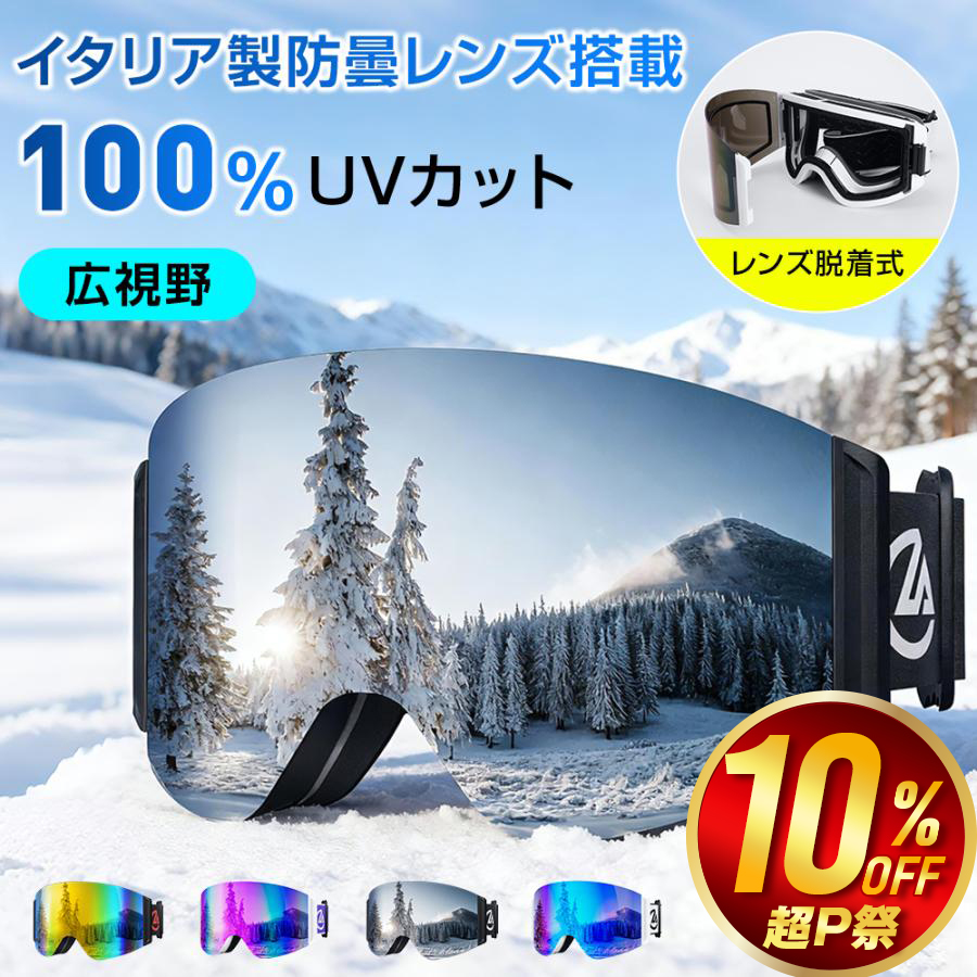 【10%OFF・新モデル!】スキーゴーグル ダブルレンズ スノーボード メンズ レディース ヘルメット・メガネ対応 フレームレス 脱着式レンズ 広視野 曇り止め