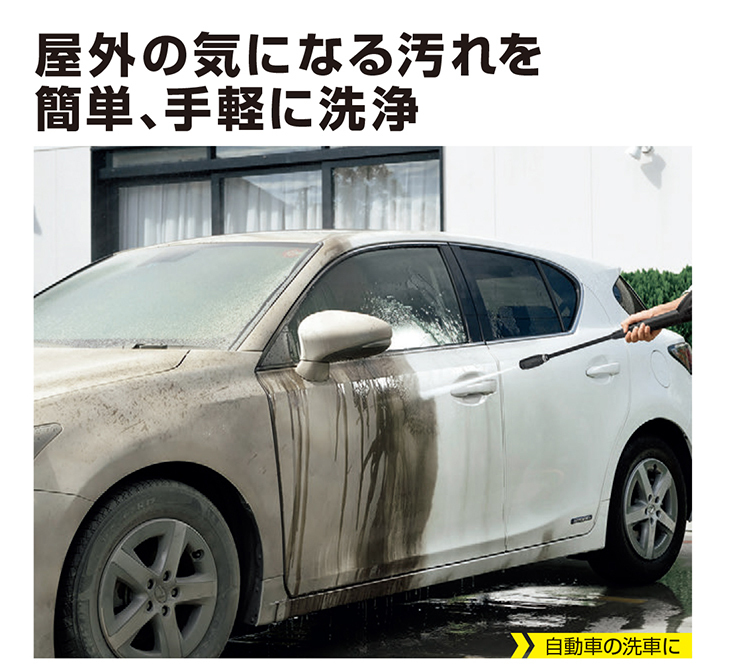 ■付属の2種類のノズル+フォームノズルで洗車も簡単