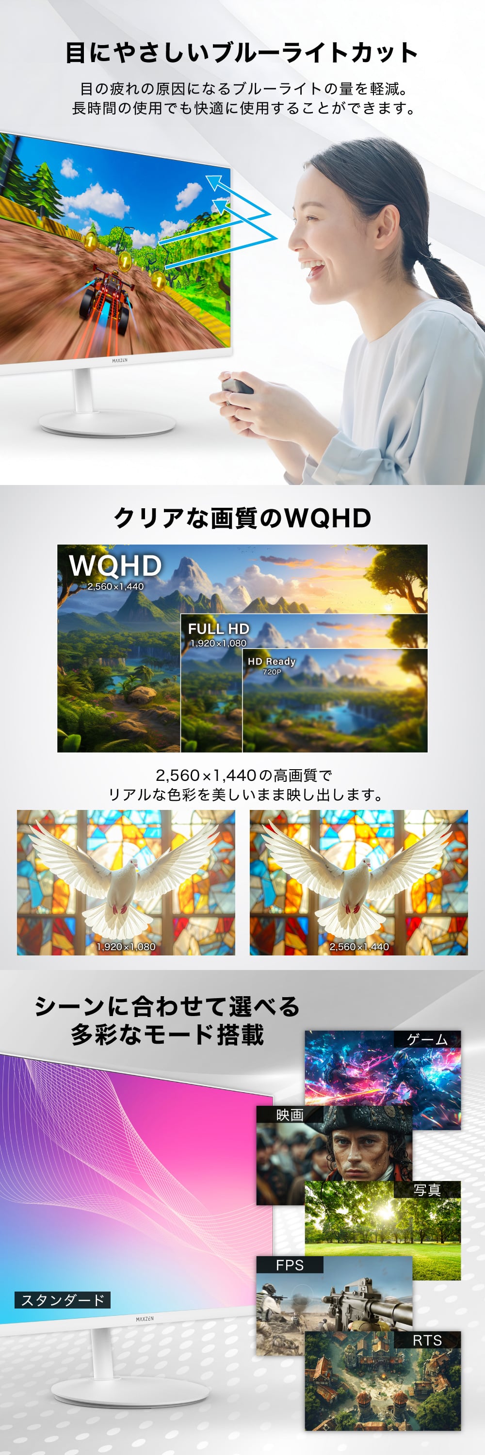 色の階調までなめらかに再現。映像やゲームを、より自然で美しい色合いで楽しめます。