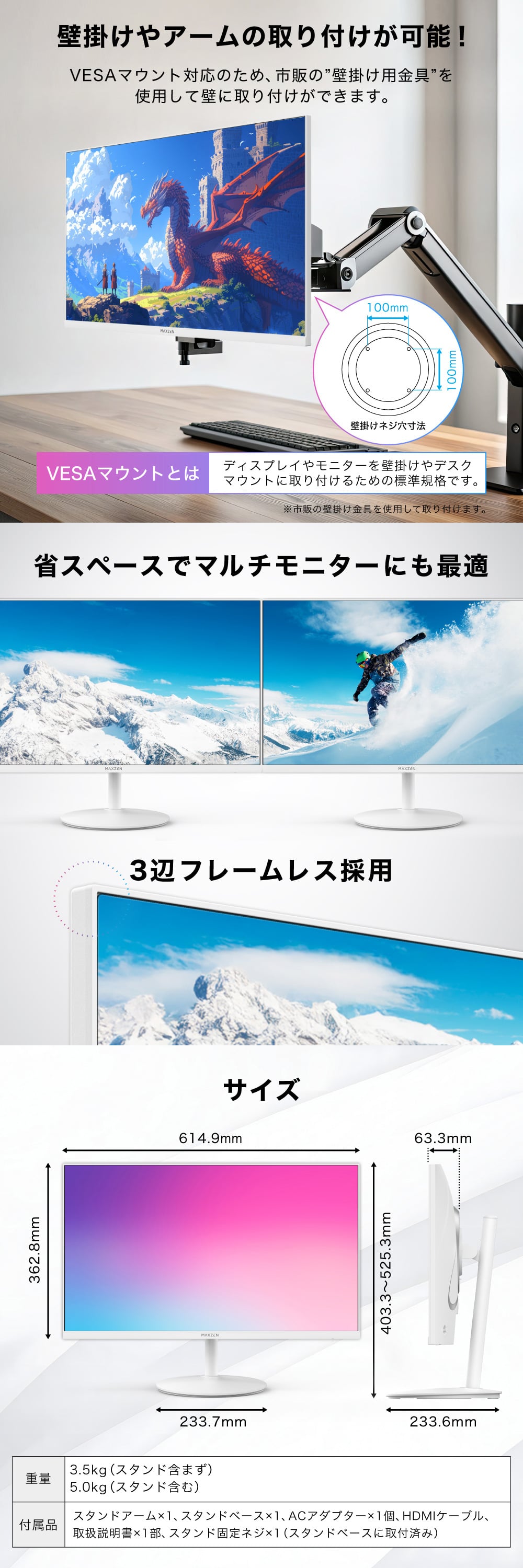 ★ 省スペースでマルチモニターにも最適