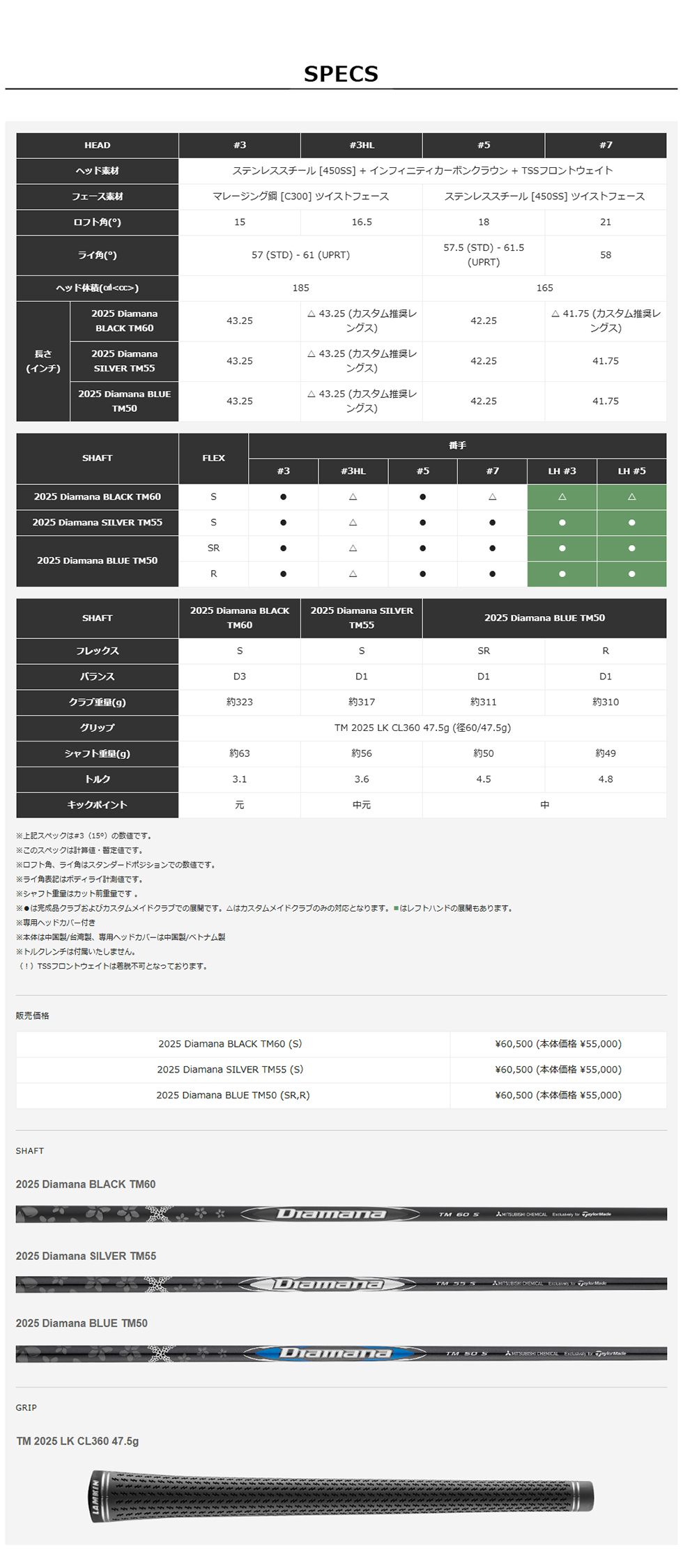日本正規品 テーラーメイド Qi35 フェアウェイウッド 2025年モデル Mitsubishi Diamana Silver TM55-Sフレックス #5