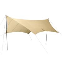 買い足しをせずキャンプ場に持ち出せるよう、タープ本体の他にペグ、ロープ、ポール2本、キャリーバッグ、延長ベルトが付属しています。