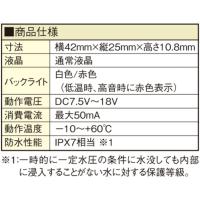 白色LEDバックライト付。-9℃〜150℃まで測定可能。5℃未満/121℃以上でバックライトが赤く点灯し、寒冷/高温状態を一目で確認できます。