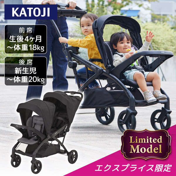 二人乗りベビーカー カトージ 二人でゴーDX シングルタイヤ ブラック 1ヶ月から 新生児から 【保証期間:1年】 [ KATOJI 縦型 双子用 年子 兄弟 姉妹 ]