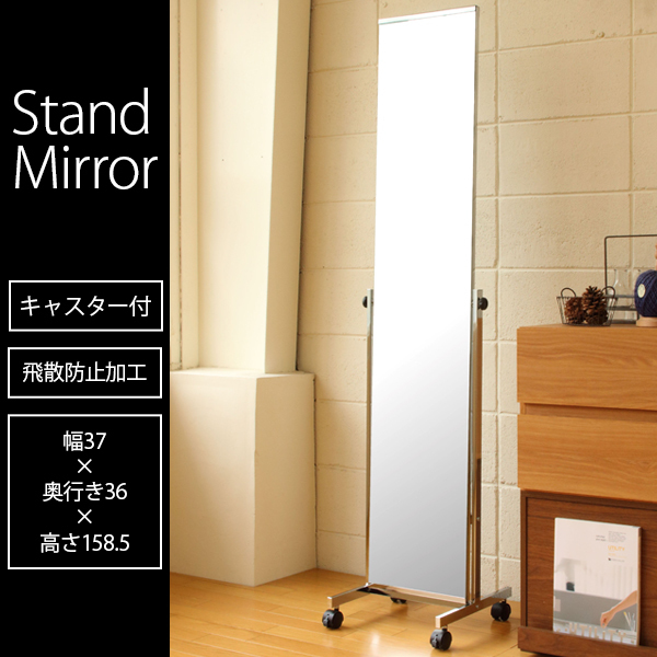 ★ 鏡:飛散防止加工★ キャスター:ストッパー付2個・ストッパーなし2個【スペック】* サイズ: .W370×D360×H1585mm .鏡: W300×H1470×t3mm* 素材:フレーム: スチール クロームメッキ