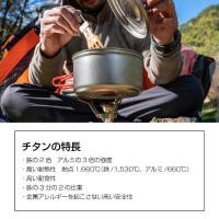 ★ 人気の「Ti Mug pot 500」の底がフラットなモデル。底面をフラットにすることで、ガスストーブ使用時の安定性を向上し、安心して使用出来るようになりました。* サイズ:径9.7cm×深さ8.7cm* 容量:550ml(目盛付き)* 質量:79g(シリコンチューブ含む)* 素材:純チタン(国内製造)
