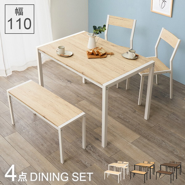 ★ 温かみのある木目調天板とアイアンフレームを組み合わせたダイニング4点セット。★ シンプルなデザインで、コンパクトでありつつ4人でも使えるサイズ感。* 組立区分: 組立式* 素材…・フレーム: スチール・天板、座背部: 合成樹脂化粧繊維板(塩化ビニル)* サイズ: (約)幅100×奥行207.5×高さ65×座面高36cm* 生産国: 中国