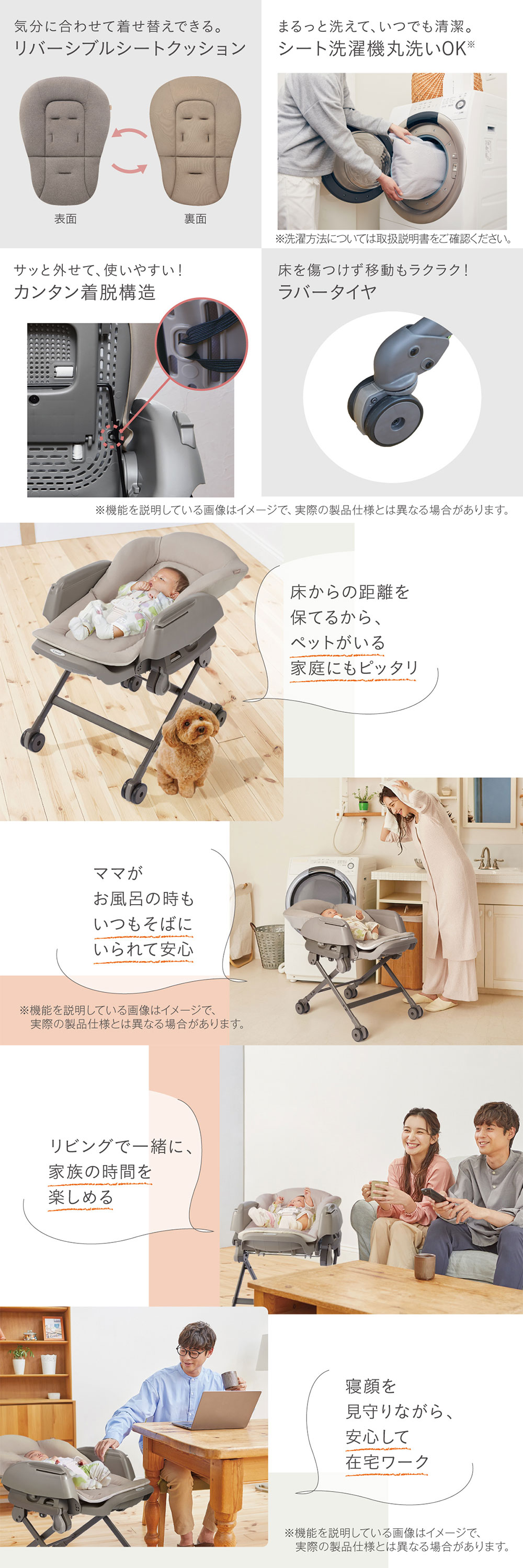 ★ 寝かしつけのベッドからお食事のときのハイチェアまで。