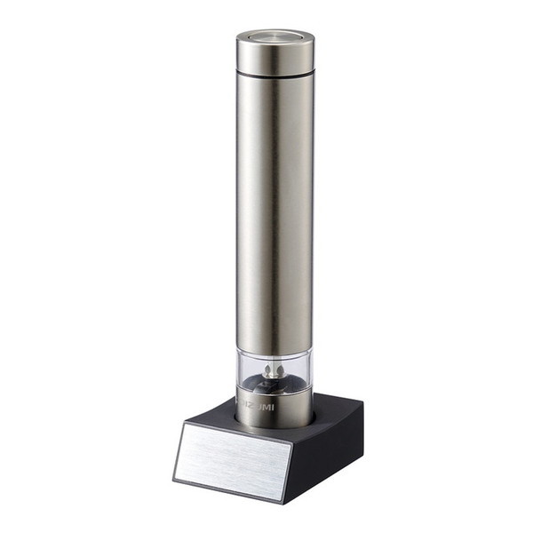 ★ 粗さ調節可能★ 内容物が見えるキャビン★ マグネット付き土台付属★ 乾電池式(単4乾電池 4本)★ 岩塩も使用可能★ 片手で操作★ 手が汚れない★ お掃除ブラシ付き* 電源: DC6V 単4形アルカリ乾電池4本* 電池持続時間: 約30分* 本体質量: 約180g* 本体寸法: 約35(W)×35(D)×185(H)mm* 付属品: 台座、掃除用ブラシ、取扱説明書(保証書付)