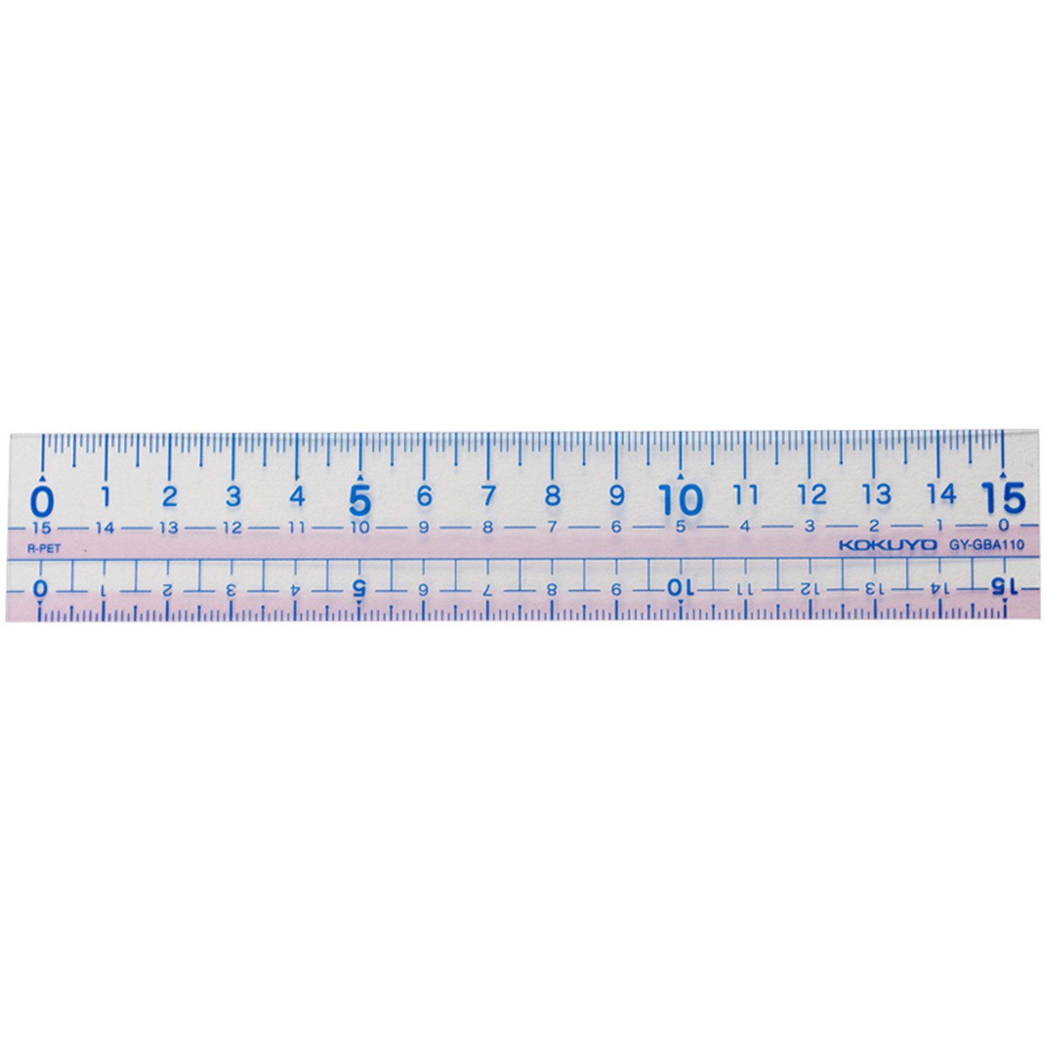 ●2・3・7・8mmの目盛りを1・4・6・9mmの目盛りよりも長くすることで、見やすくしました。●通常の目盛りの下に、右側から始まる目盛りを付けました。●5cmごとに数字を大きくして読みやすくしました。●2・3・7・8mmの目盛りを1・4・6・9mmの目盛りよりも長くすることで、見やすくしました。●外寸法/160・30(T1)●目盛りサイズ/15cm ●材質/R-PET