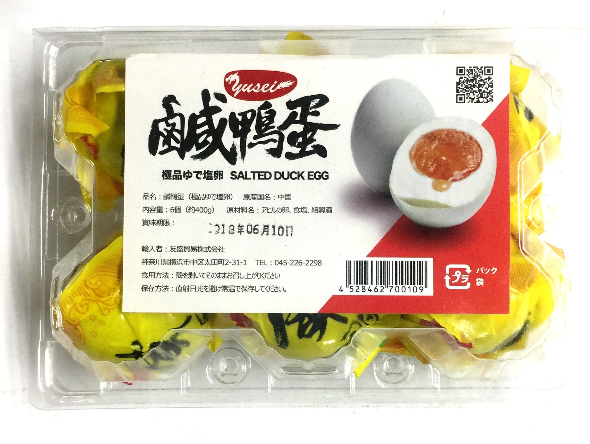 商品紹介中国産のアヒルの卵を塩漬けにした商品です。中国、台湾では家庭料理の食材の一つです。かなり塩気が強くなっていますので、一般的には殻を剥き刻んでお粥のトッピングとして召し上がる事が多いですが、刻んで炒め物の調味料代わりに使われる事もあります。また刻んでサラダのトッピングにもご利用される事もあります。原材料・成分アヒルの卵、食塩、紹興酒