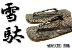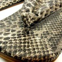 新作の雪駄が登場です!!日本の工場で生産された完全なるMade in JAPAN!表の生地はコーティング生地が使われており、尻金は馬蹄を使用しております。総パイソン柄の男らしいデザインです★踵を出して履くのが粋!2cm程度は踵がでても気になりません。祭りや散歩にも超おすすめです!※Mサイズだけライト底が水色になります。