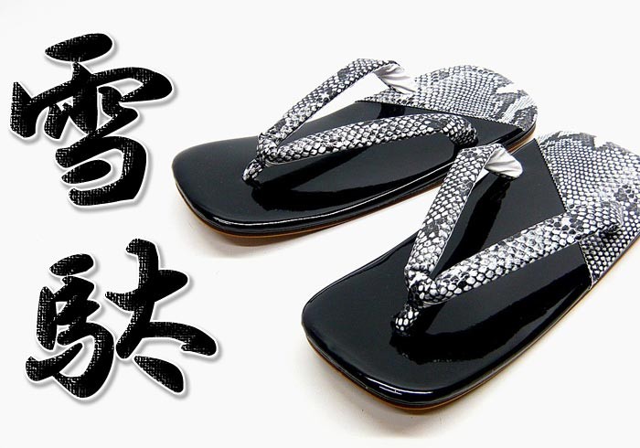 新作の雪駄が登場です!!切り替えを施し、和柄デザインを貼り付けたデザイン。蛇柄の人気タイプです。踵を出して履くのが粋な履き方で、2cm程度は踵がでても気になりません。祭りや散歩にも超おすすめです!