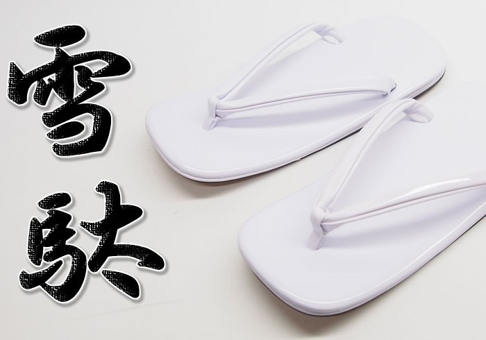 新作和柄雪駄が登場!!エナメル素材を使った雪駄で、底から鼻緒まで白パールで統一しました。底裏は本革を使用しています。