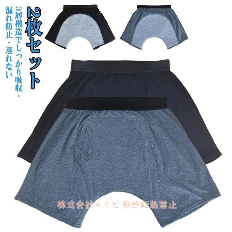 メイビ2枚セット!吸水 失禁パンツ 繰り返し利用可能 ボクサーパンツ 漏れ対策 280cc 尿漏れパンツ 介護用パンツ 男性用 インナー 重失禁パンツ 尿漏