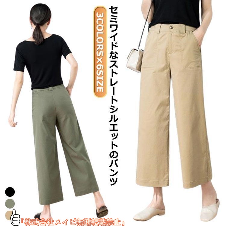 メイビ秋 レディース 9分丈 九分丈 夏 セミワイドパンツ チノパンツ 低身長 きれいめ ツイル生地 チノパンレディース カジュアル ストレッチ 9分丈