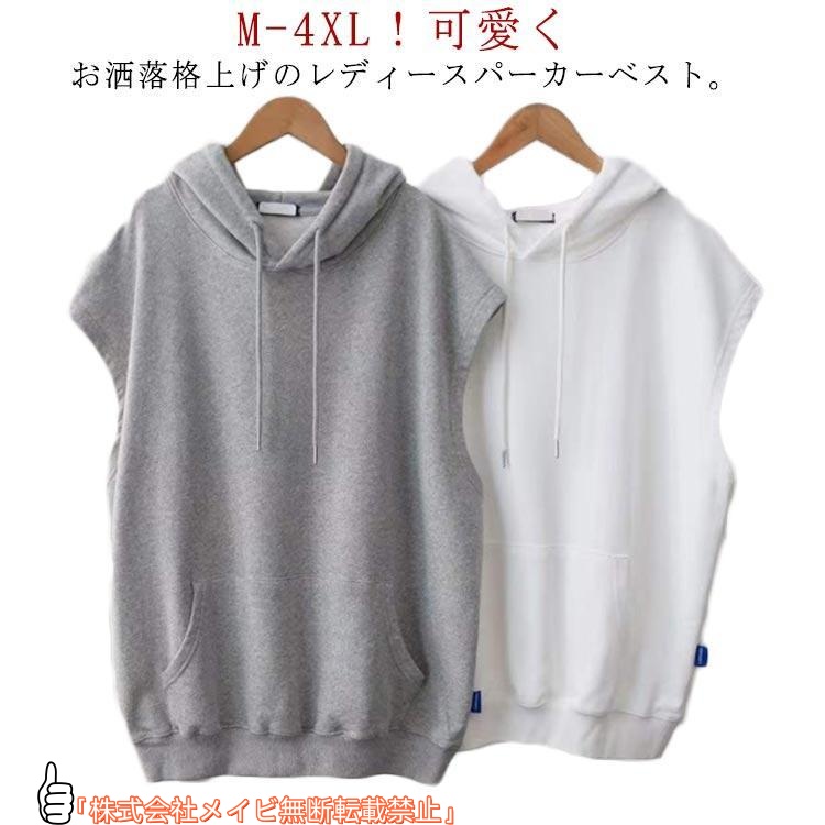 メイビベスト レディース スウェット チョッキ パーカーベスト 体型カバー トレーナー ジャージ ノースリップ フード付き トップス レイヤード 夏 ゆっ