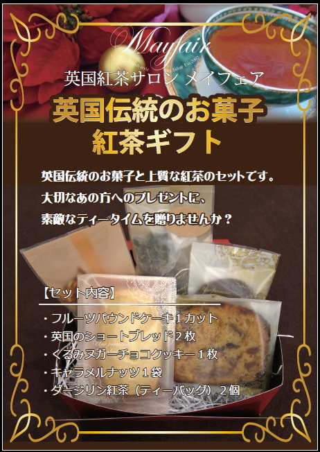 イギリスの伝統的な焼き菓子と紅茶ティーバッグが赤いギフト箱に入ったギフトセットです。