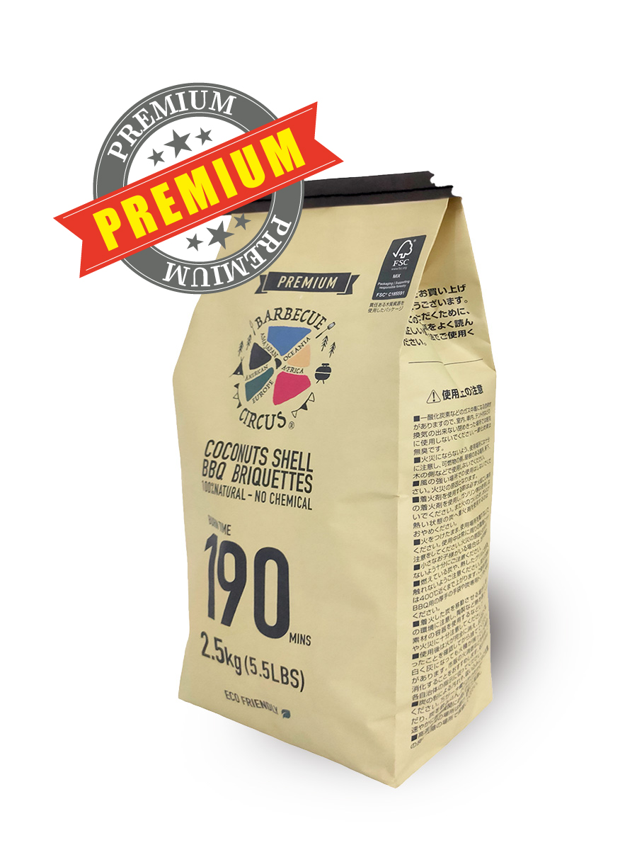 Barbecue Circus ヤシガラチャコールブリケットプレミアム 2.5kg エコフレンドリー BBQ 炭 高火力 長時間燃焼 グリルアクセサリー 環境に優しい高効率炭
