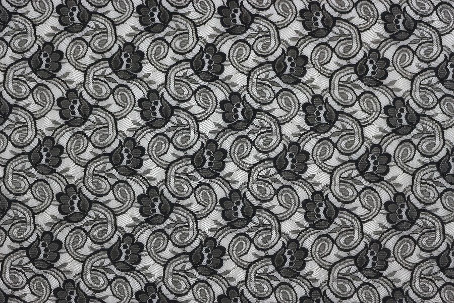 レース 生地 ラッセルレース ブラック 花柄 日本製 ポリエステル100% 約105cm巾【50cm以上10cm単位での販売】