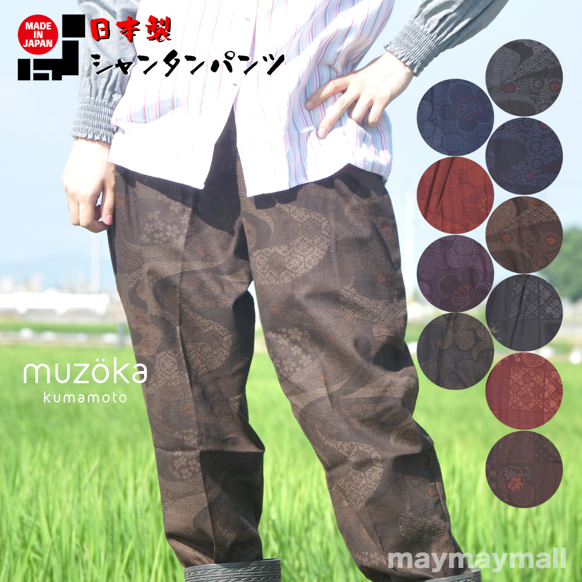 パンツ レディース シャンタン 和柄 日本製 綿100% お洒落 作業 ガーデニング 農作業 花柄 もんぺ M L LL 大きいサイズ
