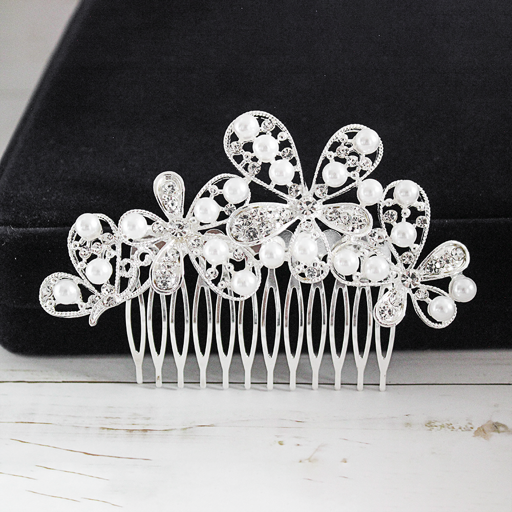 丁寧にはめ込まれたパールとビジューのヘアコーム♪