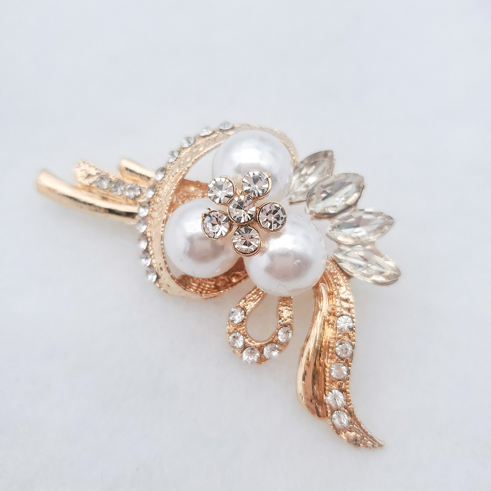 ブローチ パール コサージュ リーフB ゴールド 卒業式 入園式 結婚式