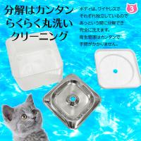 ※画像はイメージです。実際の商品とはデザイン・仕様が一部異なる場合がございます。 ワイヤレス自動給水器です。※給電器への給電のため、給電器のコードをアダプタに差し、お近くのコンセントに差してご使用ください。換え用スポンジ+2個、お掃除ブラシ付き!【安心の大容量3L】外出時間が長い方にも安心できる3Lの大容量タイプです。容量が大きいので多頭飼いにも向いています。【騒音レベル約10db】騒音値は約10デシベルなので音に敏感なネコちゃんやワンちゃんも安心。夜間の使用にも安心して使用できます。【4層構造の高性能フィルター採用】ヤシガラ活性炭やイオン交換樹脂を含む高性能フィルター(4層)でいつもおいしい水をあげることが出来ます。毛やほこり、臭いなどを除去して水を清潔に保ちます。食事や運動と併せて新鮮な水を定期的に飲むことで、ネコちゃんやワンちゃんの下部尿路(膀胱から尿道部分)を正常に保ちやすくなります。※本製品のフィルターは水質検査を行っております。【らくらくお手入れ】ワイヤレスかつモーター取り外し可能なので本体を丸洗いでき、付属ブラシで簡単にお手入れができます。【透明タンクで残量がわかる】タンク部分には透明な素材を使用しているので、見ただけでお水の残量がわかります。透明で目立ちにくいためリビングなどに設置したい方にもオススメです。【安心素材】ABS樹脂素材でペットが舐めても安心。飲み口はステンレス素材なので、細菌の増殖を抑え、雑菌によるペットの「黒あご」を効果的に防ぎます。【省エネ・安心設計】省エネ技術で24時間稼働でも、月額電気代は約25円!(あくまでも目安です)水位が少なくなったらポンプが自動で停止するので安全にお使いいただけます。転倒しにくいように本体には滑り止めが付いています。コードには噛みちぎり防止のナイロン製を使用しています。