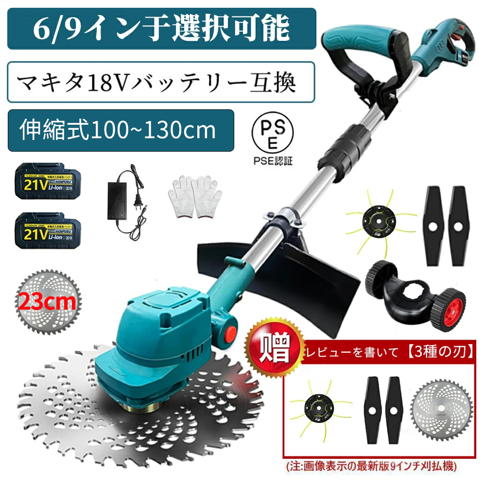 即納 草刈機 充電式 電動 草刈り機 コードレス 伸縮式 角度調整 替刃14枚付き マキタバッテリー互換 芝刈り機 刈払機 枝切り 女性 安全 軽量 4種類替刃 2025年
