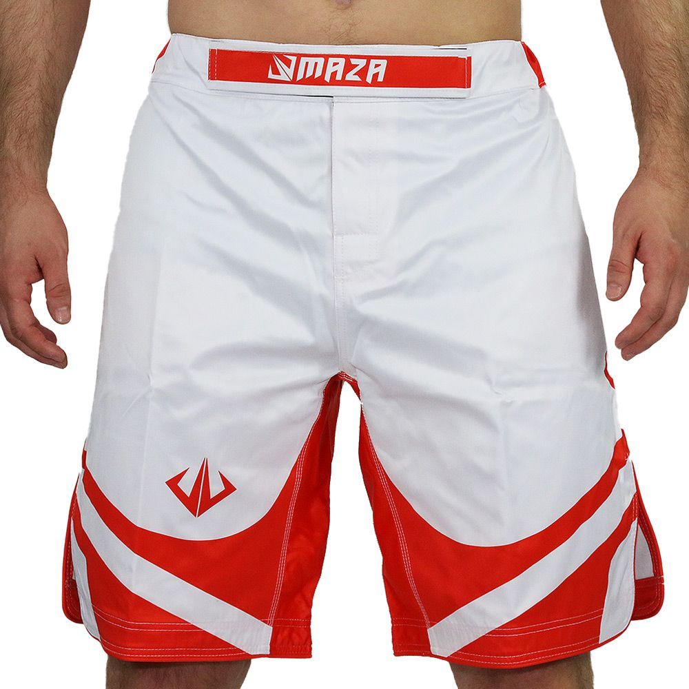MAZA[マザ] トライデント プロファイトショーツ(白/赤) / 総合格闘技 ボクシング キックボクシング ブラジリアン柔術 ムエタイ テコンドー 空手 MMA ファイトギア ボクシングウェア ボクシングショーツ ボクシングパンツ ユニフォーム メンズ 男性用 ユニセックス