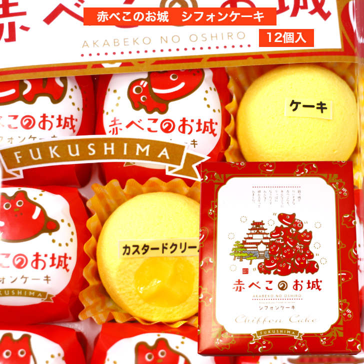 赤べこのお城 シフォンケーキ(12個入) シフォン 赤べこ 赤べこシフォンケーキ 鶴ヶ城 ケーキ 個包装 会津土産 福島土産