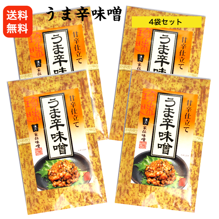 うま辛味噌(竹紙)4袋セット うまから味噌 からみそ 辛子味噌 味噌 信州 家伝味噌 からし味噌