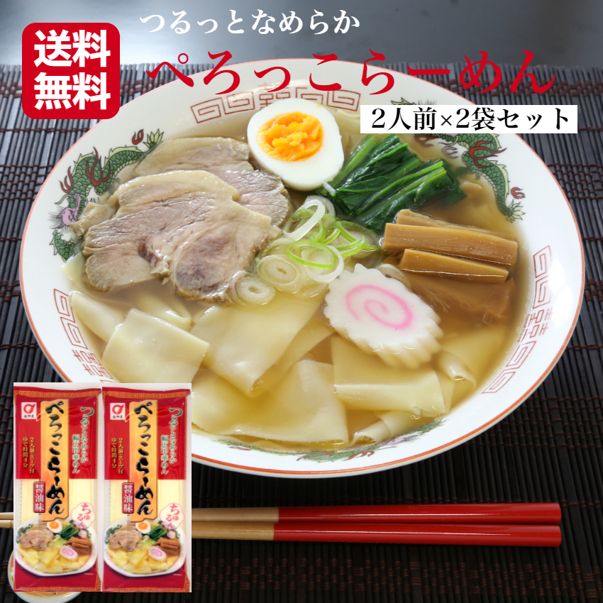 ぺろっこらーめん 4人前(2人前×2袋セット)ぺろっこ らーめん スープ付 ラーメン 乾麺らーめん 幅広らーめん 幅広めん 乾麺 帯麺 ひもかわ 岩手名物 岩手土産