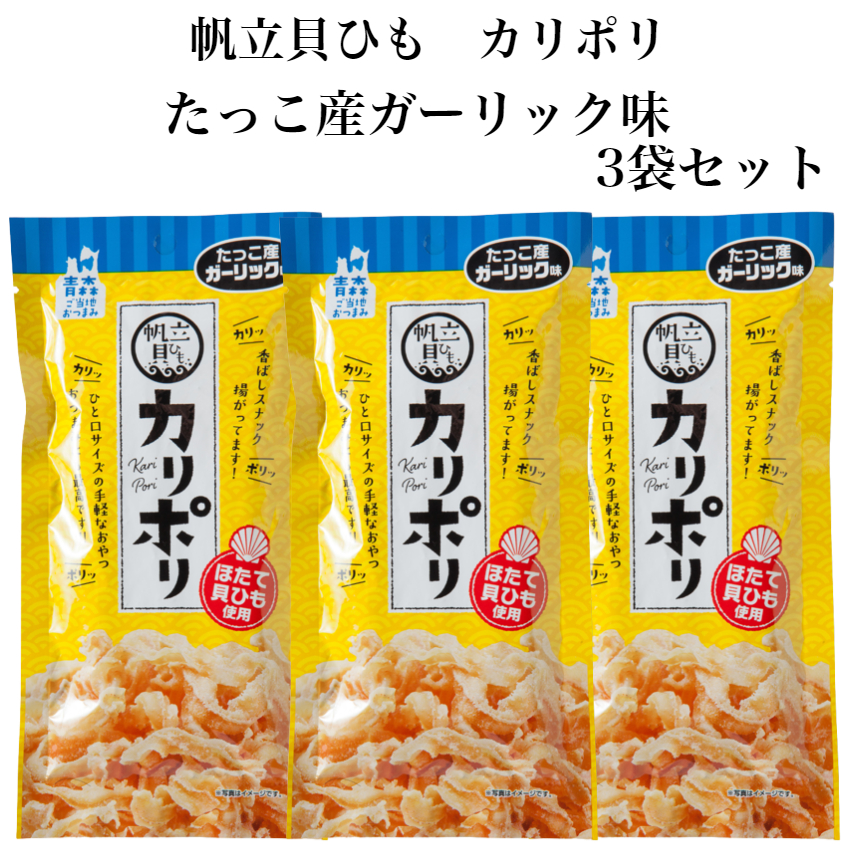 帆立貝ひも カリポリ たっこ産ガーリック味 3袋セット 田子にんにく ほたて貝ひも 帆立 貝ひも ほたて 青森帆立 津軽帆立 かりぽり おつまみ 珍味 ホタテ貝