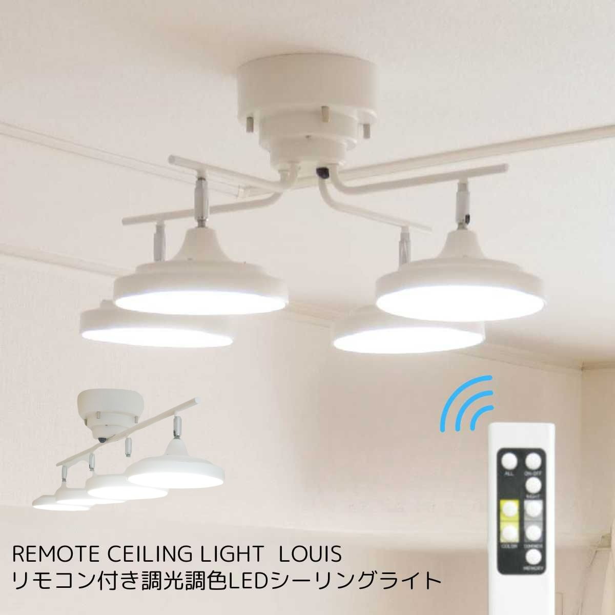 シーリングライト led 天井照明 4灯 おしゃれ 北欧 照明器具 リモコン 調光 調色 リビング ダイニング 6畳 8畳 10畳
