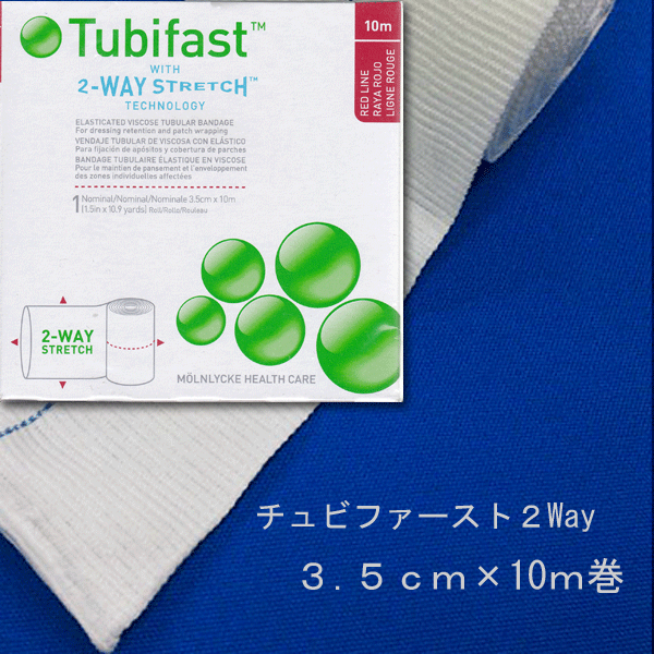 チューブ型の包帯です。幅3.5cm 10m巻 保湿剤を塗った部分に被せて装着します。薬の有効成分の経皮吸収が高まります。
