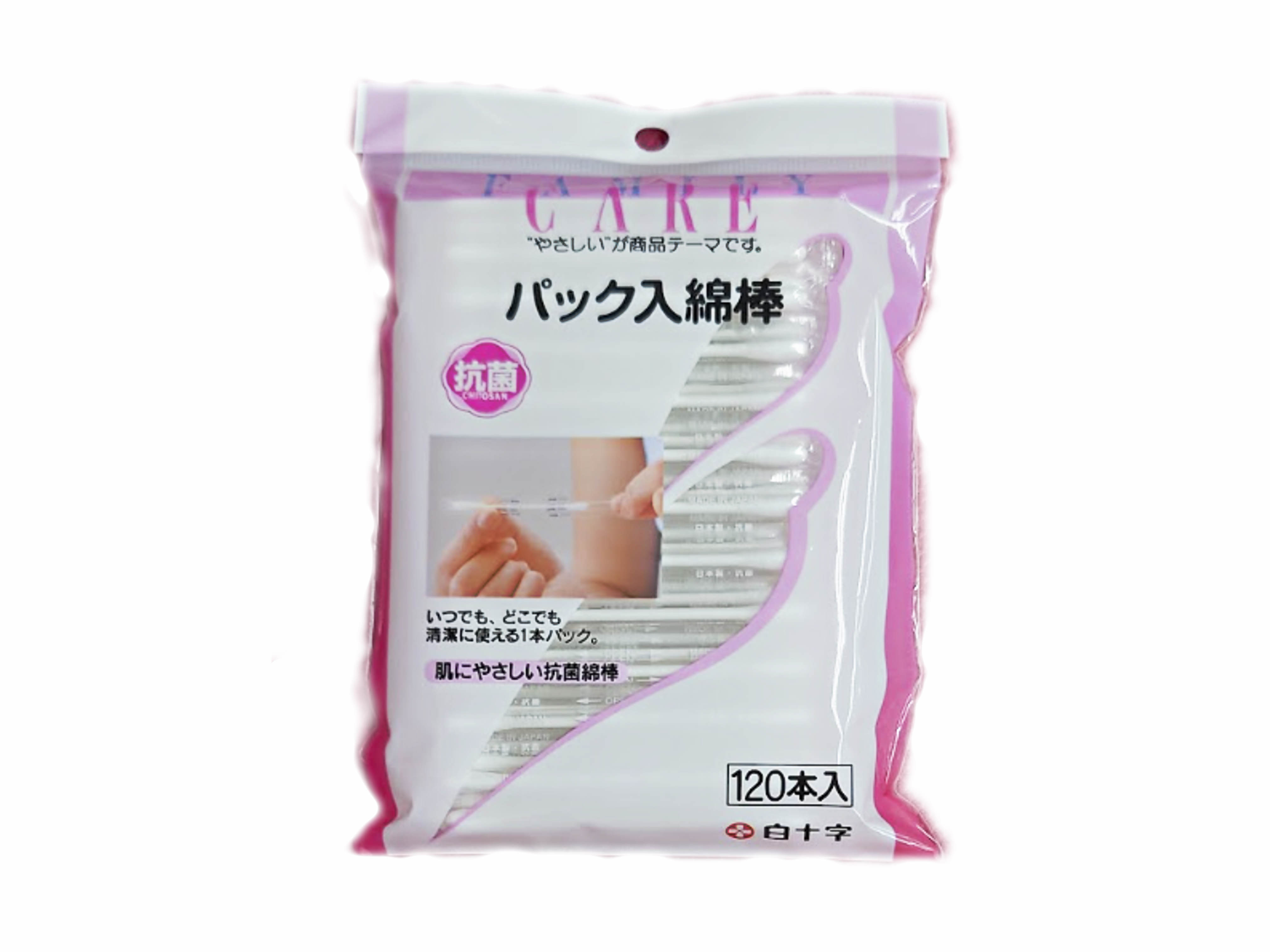 レギュラーサイズの綿棒です。1本ずつパックに小分けしています。