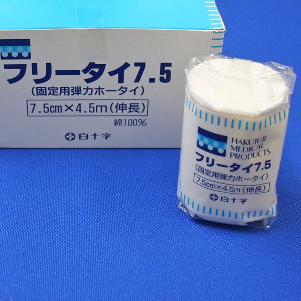 圧迫固定に適した厚手の丈夫な弾力ホータイ。巾7.5cm