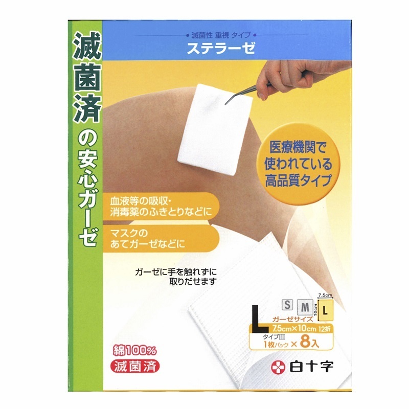 白十字 FCステラーゼL 8枚入 滅菌済 7.5×10 医療ガーゼタイプIII